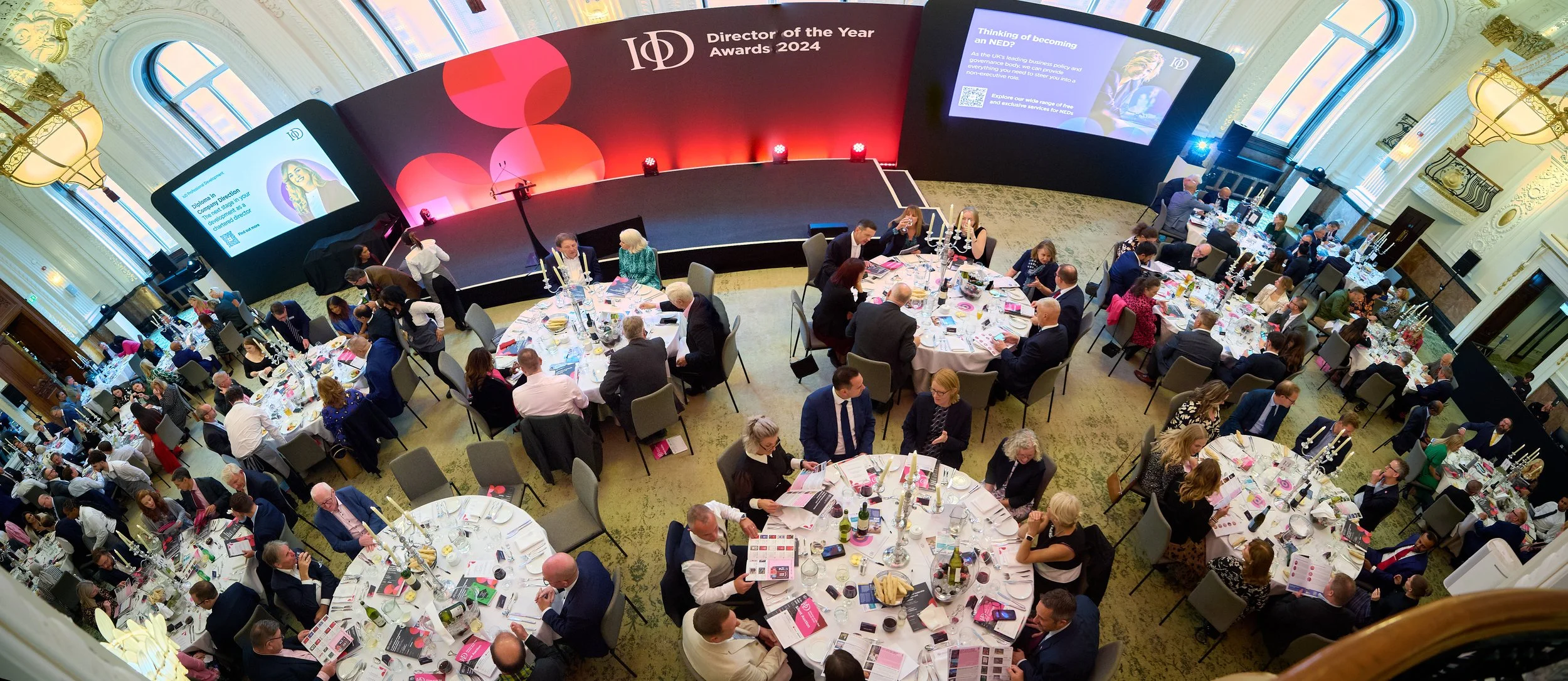 Produced a wide range of deliverables spanning the entire lifecycle of the awards. Promotional graphics were followed by event collateral such as printed programmes, table plans, and stage artwork. On the day of each ceremony, bespoke event slides were created to announce finalists and winners, complemented by branded stage wraps, lectern artwork, and signage. All outputs were designed to strengthen the IoD brand, elevate the atmosphere of the ceremonies, and deliver a professional, celebratory experience.